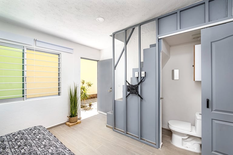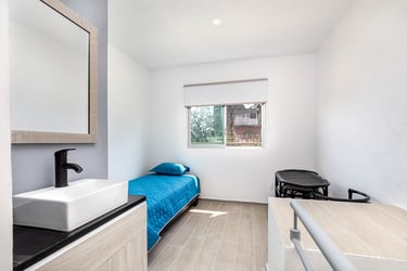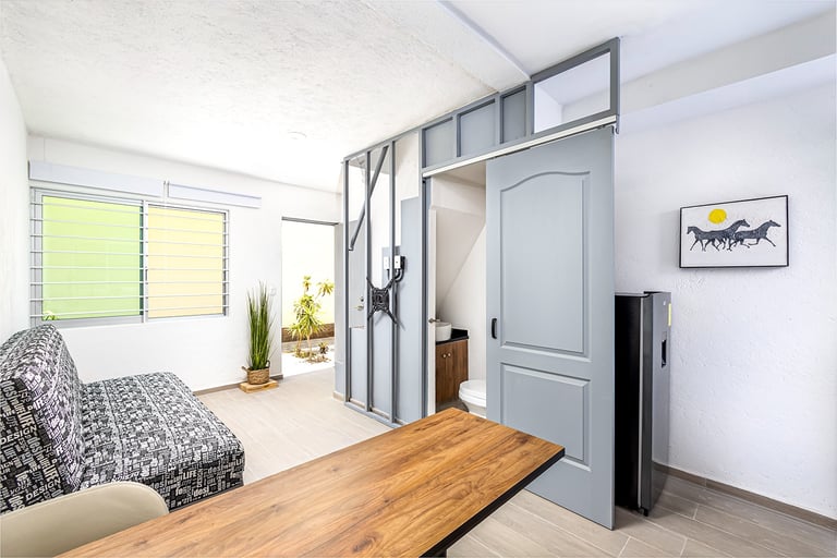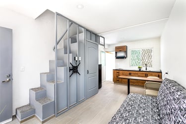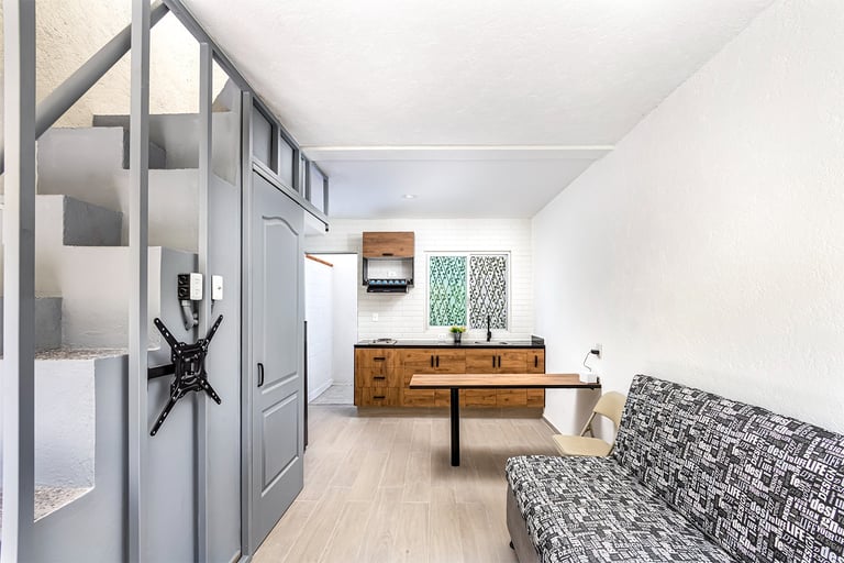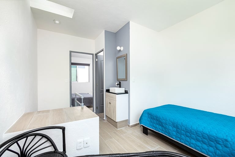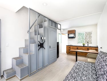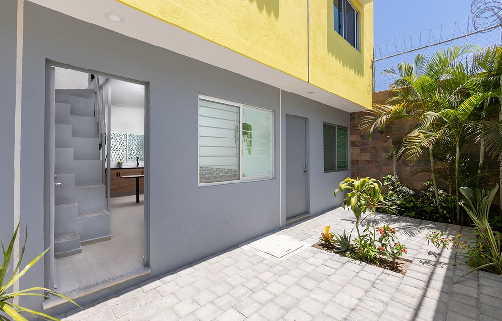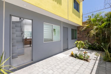Casas independientes con 47.00 metros de construcción en dos plantas. Estancia/Comedor, Cocina Integral con Parrilla Eléctrica, Patio de Servicio con Instalación para Lavadora y Calentador Eléctrico, 1 y 1/2 Baños, Una Recámara, Una Alcoba/Estudio (Con opción a ser Segunda Recámara), Cisterna de 10/20 mil litros, Estacionamiento, Alberca Común.